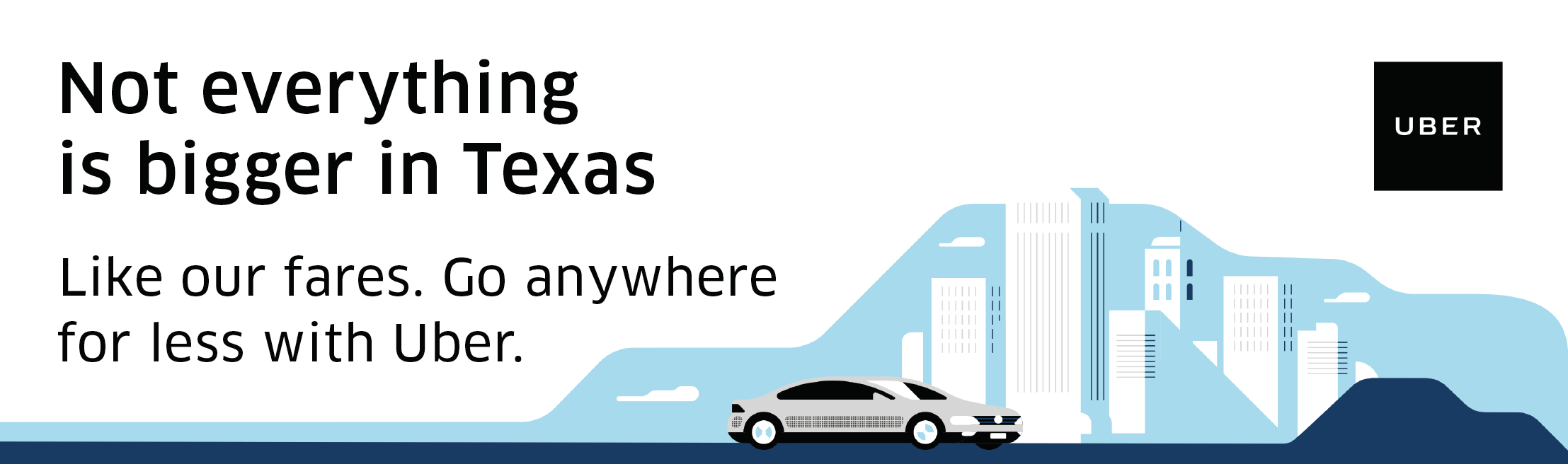 Actually, everything is bigger in Texas, including the open road. I worked with the local Dallas team to create OOH work promoting the core ridesharing product, uberX. These were placed along seemingly endless highways in the metroplex, and the team was so happy with the results that they used them as digital banner ads. Yeehaw!